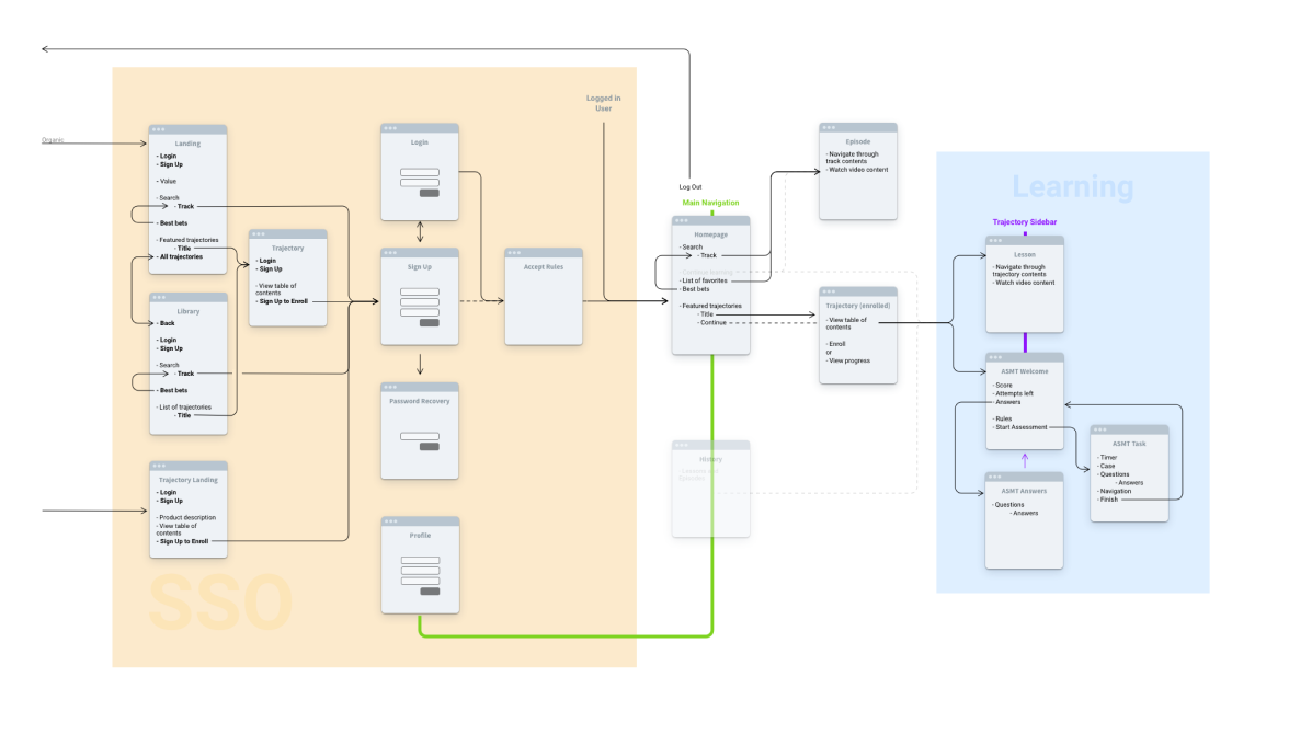 Я начал работу с изучения существующего продукта и его метрик, документации и валидации находок. Фасилитировал встречи для определения новых целей и задач, презентации складывающихся концептов. Изучил лучшие практики, используемые в современном онлайн-образовании, провел несколько брейншторм-сессий с доступными экспертами в этой области.