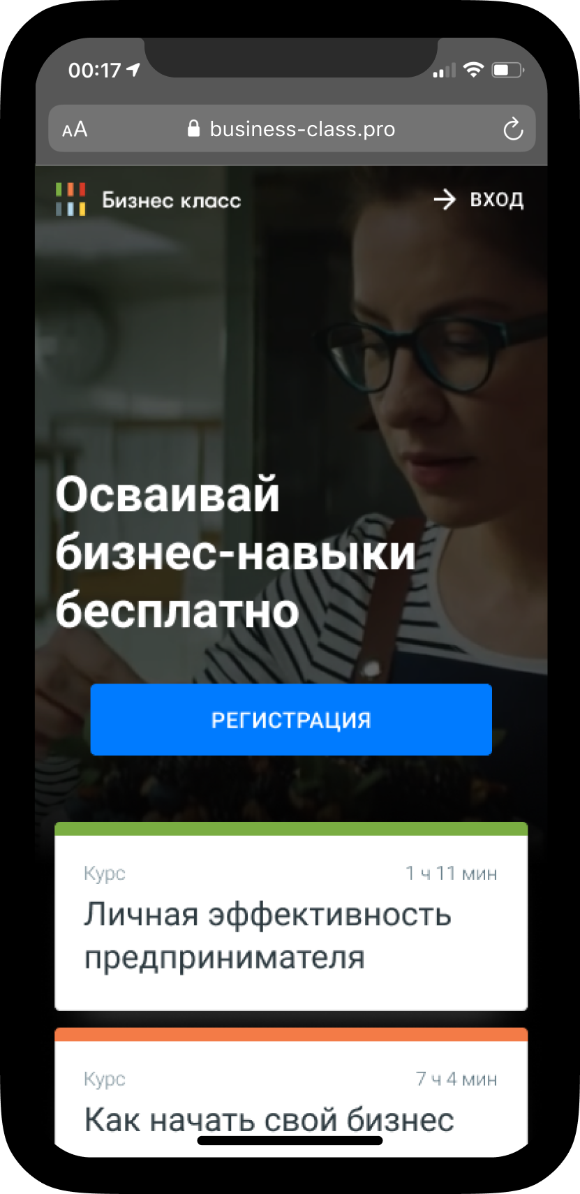Бизнес Класс сейчас — образовательная платформа с посещаемостью около 10.000 пользователей ежедневно. Кроме того, это прекрасный пример адаптивного веб-приложения с фокусом на бесшовную посадку и большое количество интерактива в пользовательском опыте.