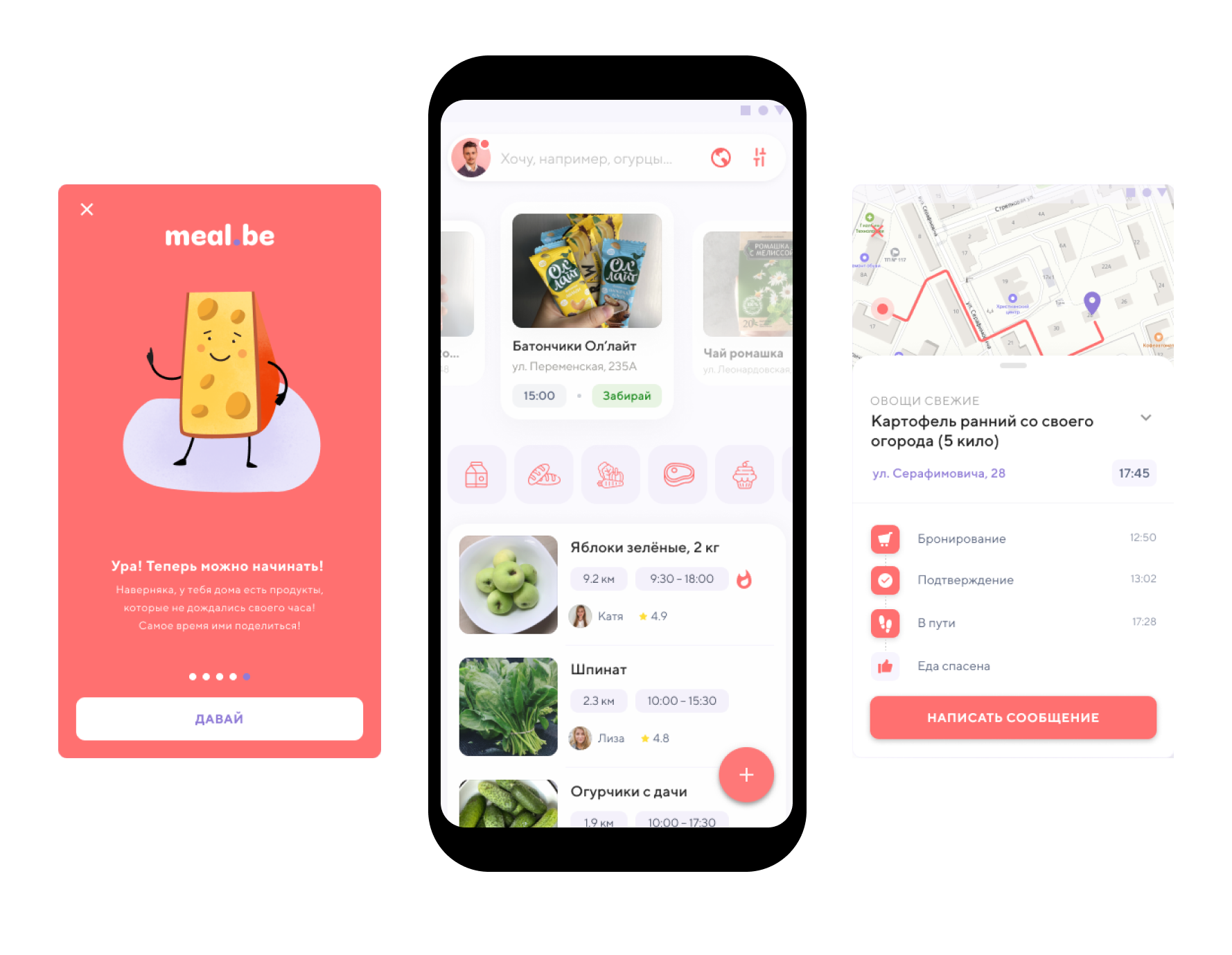 Дизайн приложения для фудшеринга. Один из студенческих проектов.