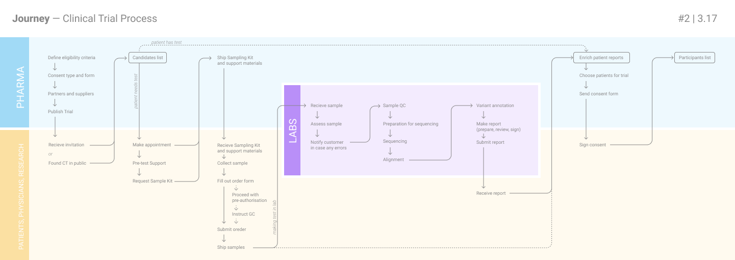 Работа велась в тесном сотрудничестве с экспертами-биологами. Чтобы разобраться в сложной предметной области проводили многочисленные интервью и юзер-тесты. Полученные знания документировали как UX-артефакты, обсуждали с командой.